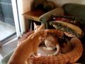 Jolee and her three sisters are quite unusual. A Litter of 3 red tabby kittens and Jolee, the tortishell...ALL girls, usually the red tabby's are boys. Jolee was a bottle-raised kitten, she is not only a playful bubbly kitten...but sweet and affectionate. That is what happens when they are bottle raised.